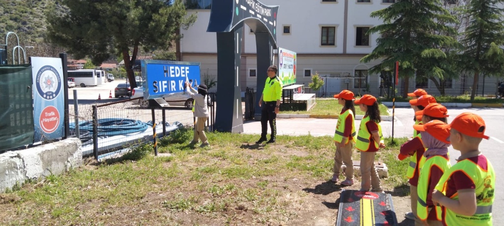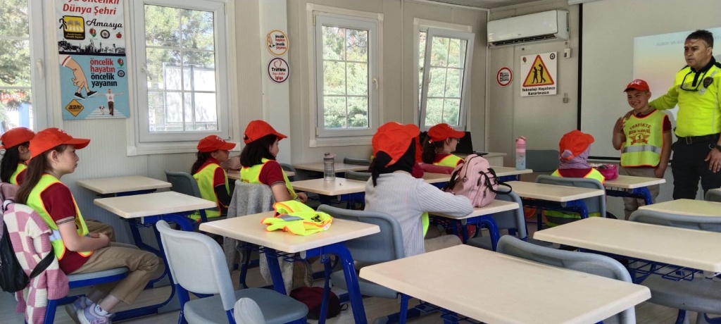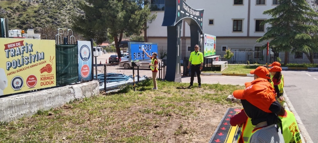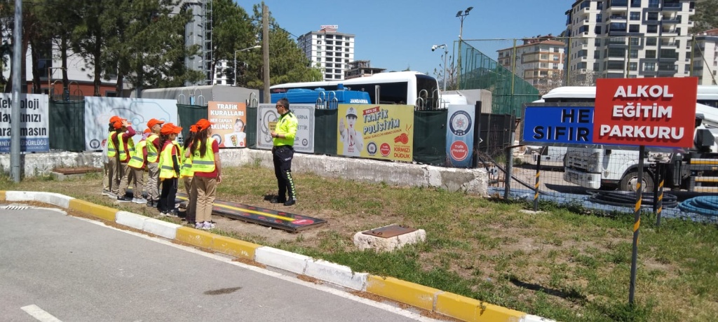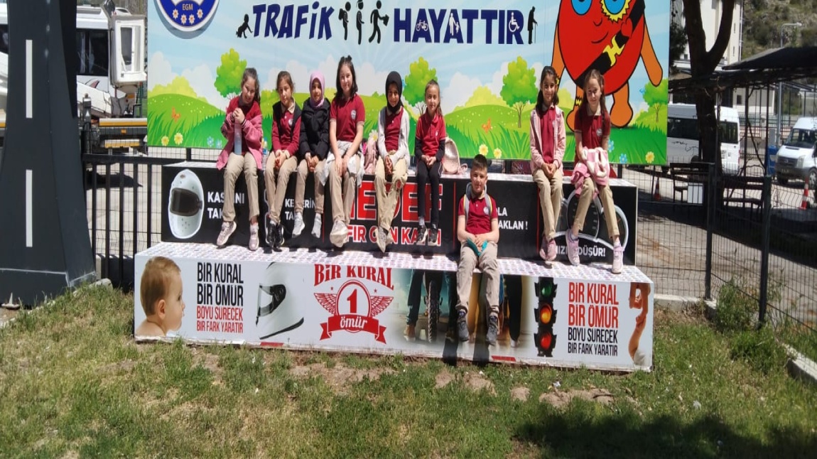 Öğrencilerimiz Amasya İl Emniyet Müdürlüğü Bahçesinde Kurulan Çocuk Trafik Eğitim Parkurunda Eğitim gördüler. Öğrencilerin derslerde öğrendikleri teorik trafik bilgilerini uygulama fırsatı vermek, trafik kurallarına uygun davranış kazandırılmasına, trafik kültürünün oluşmasına ve trafik kazalarının en aza indirilmesine yardımcı olmak amacını güden Amasya İl Emniyet Müdürlüğü bahçesinde yer alan Çocuk Trafik Eğitim Parkı'nda eğitim gördüler.